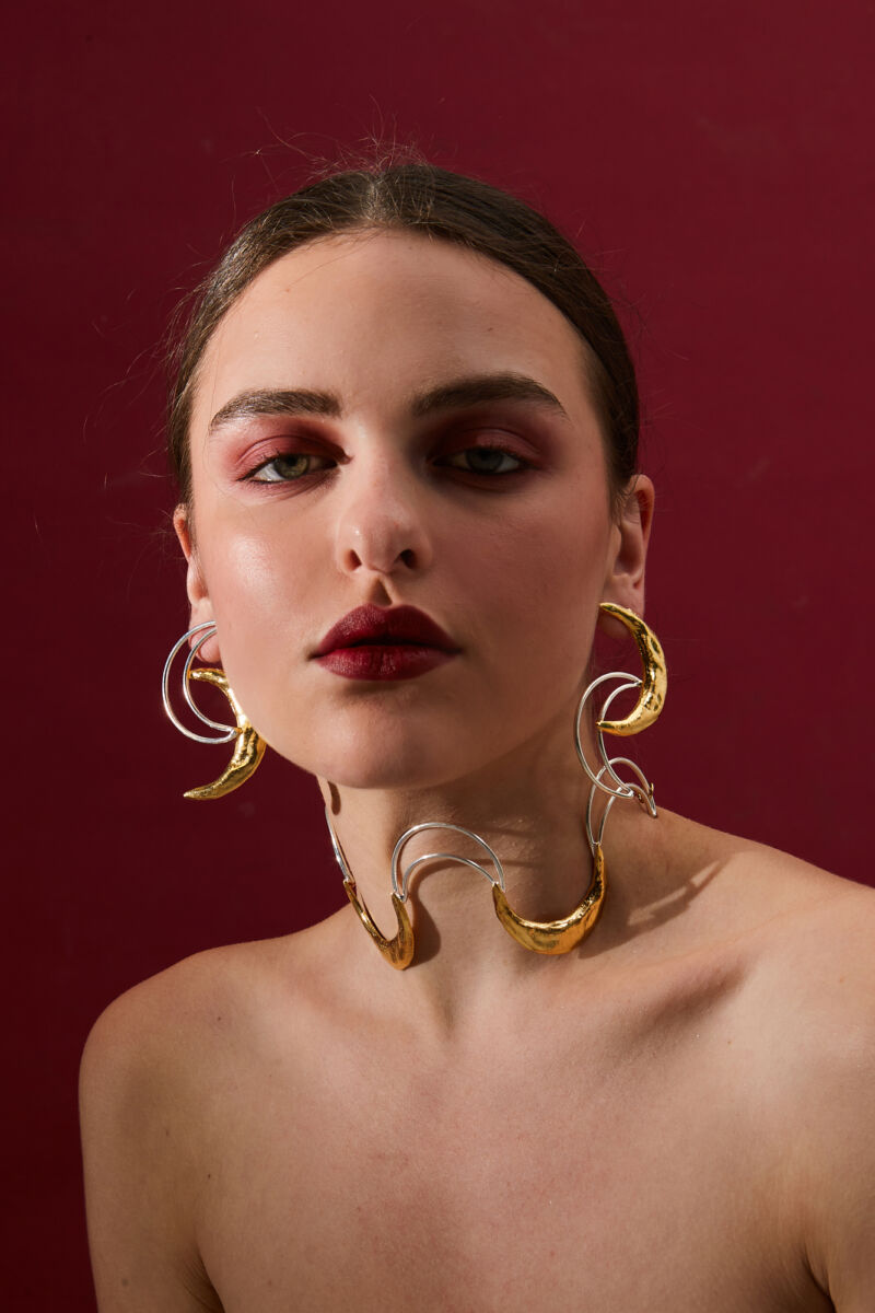 A unique pair of earrings from PRAYER FW25-26, crafted from solid bronze, with a lustrous effect, nickel free