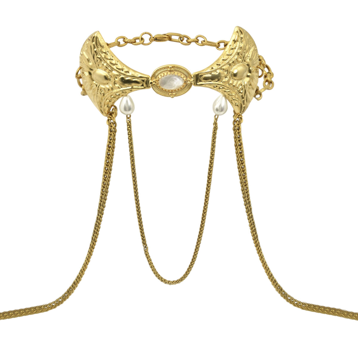 A statement choker necklace/body harness from ILION OBSCYRA SS26, crafted from solid bronze, with a lustrous effect, nickel free