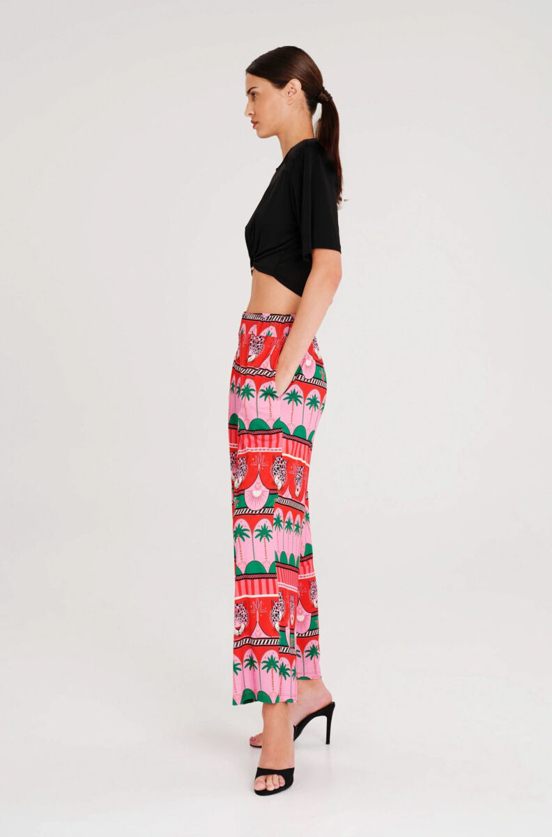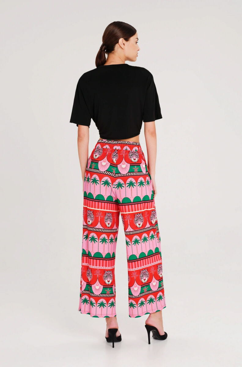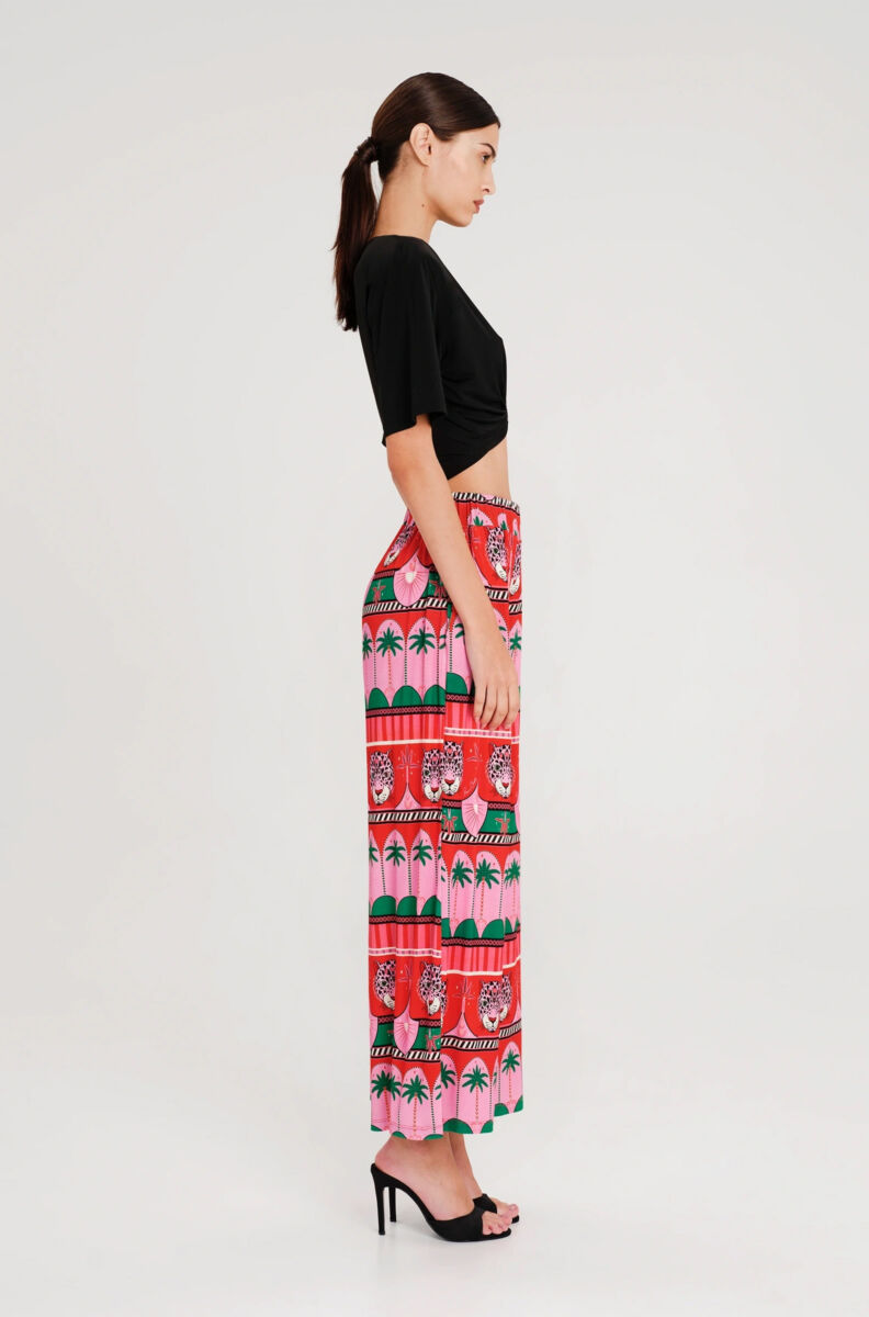 Our Enigma Crop Top is crafted from smooth stretch fabric that gathers at the front into a metallic loop. Accented with our signature metallic Chaka detail, this cropped t-shirt-style top is available in black or white. Elevate your looks for nights out and wear yours with bold printed pants like Rhythm or Fantasia.