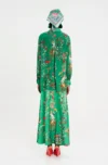 With an all-over print of hidden treasures, mystical animals and vibrant colours, our Exotic Shirt boasts charm and feminine energy. Crafted from semi-transparent georgette, this long sleeve shirt has a classic collar, cuffs and placket adorned with metallic gold buttons. Wear with a print matching Exotic Long Skirt to mix fabric and textures.