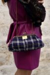 For the safety, this hand bag has been designed with a silver, frame kiss closure.