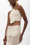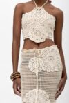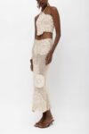 A summer statement in artisanal detail. This handmade crochet skirt features oversized floral motifs intricately stitched into an open-weave silhouette. Designed to sit at the waist and fall to a midi length, it brings ease, elegance, and texture to warm-weather dressing.