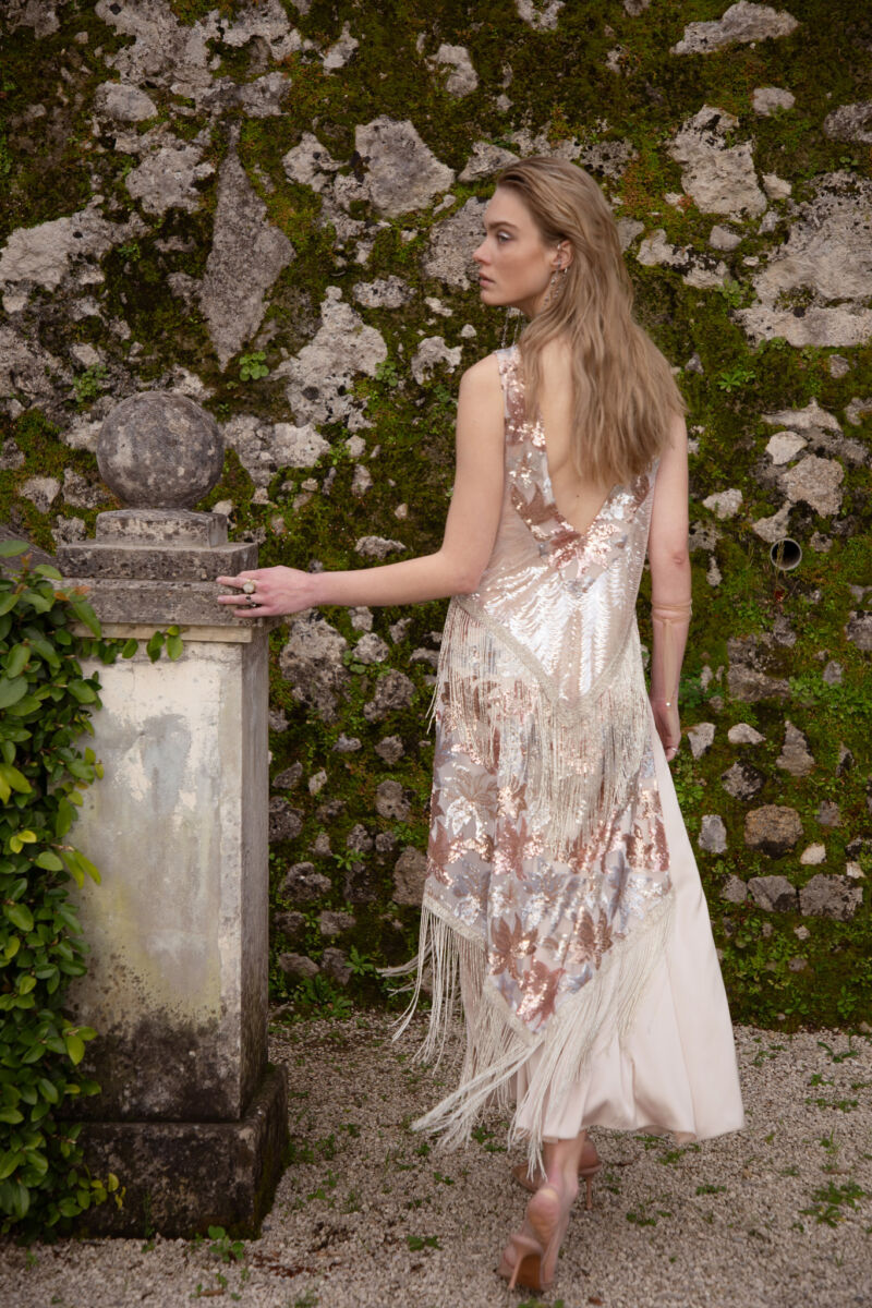 SEQUINED BEADED FRINGE SLITTED